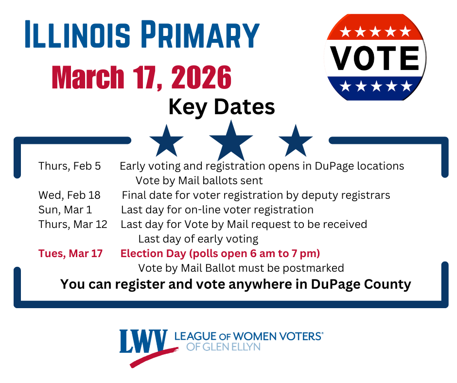 Glen Ellyn Civic Center will again serve as an early voting and election day polling location for the March 17 primary. Early voting will be held Monday, March 2nd through Monday, March 16th, with weekday hours from 8am-7pm, and weekend hours from 9am-5pm. Election day hours will be 6am-7pm.